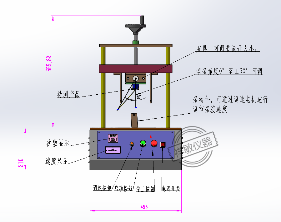3、速度测试范围:10-100次/分钟 速度可调试;