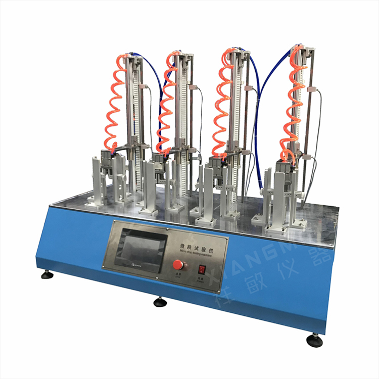 2、本机采用日本SMC气缸作为手机提起、跌落驱动源,配以精密气缸作归位动作,耐久使用;能实现手机等产品反复跌落,以检测产品由一定高度落下之耐冲击性;由于采用气动元件及专制控制方式,极大地提升测试速度和一致性;采用日本松下液晶触摸式控制屏+PLC可编程式控制制器作动作程控;